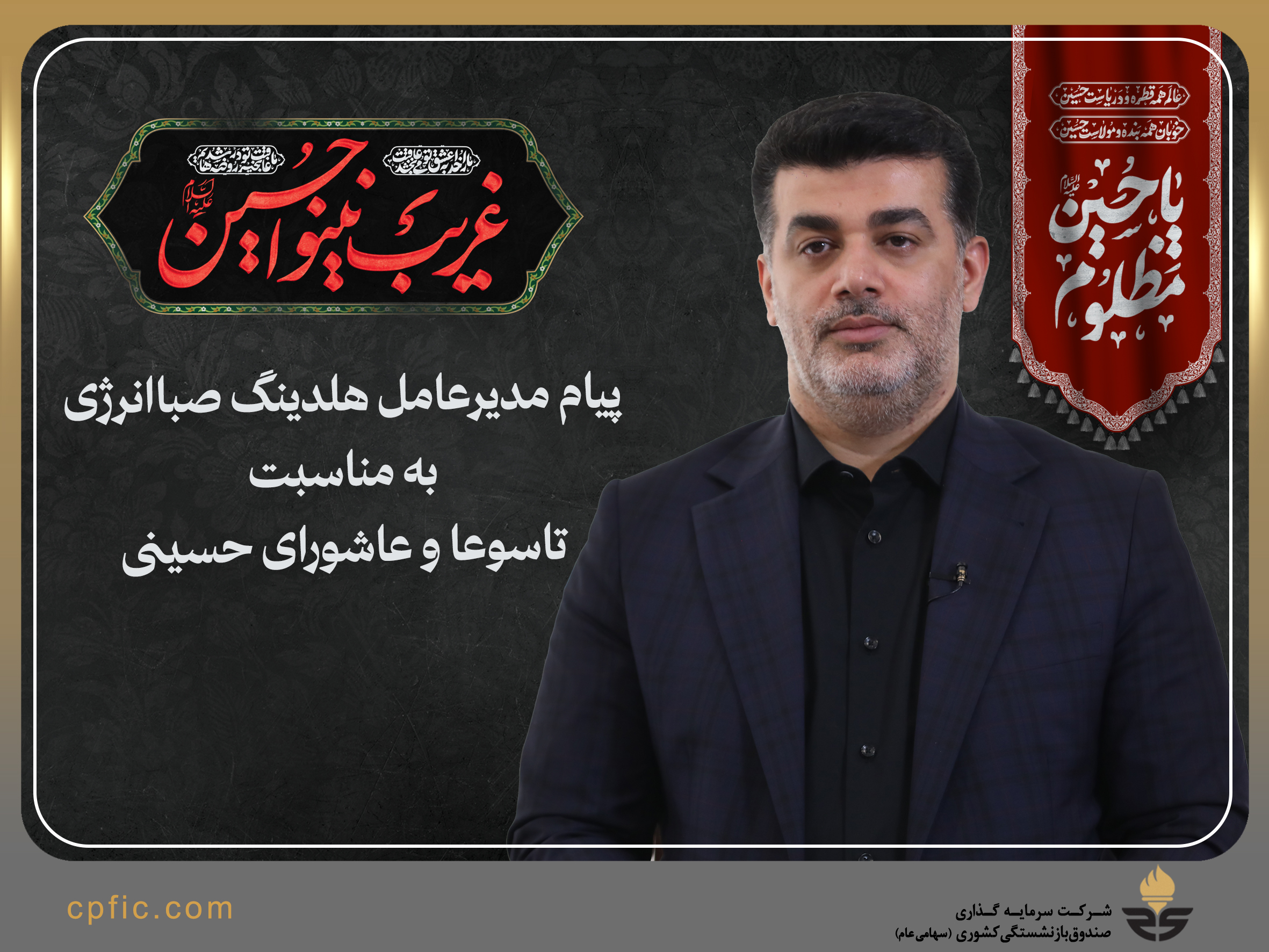 فرارسیدن ایام سوگواری شهادت مظلومانه سرور و سالار شهیدان حضرت اباعبدالله الحسین (ع) و یاران با وفایش، و همچنین شهادت جانگداز علمدار رشید کربلا، قمر بنی هاشم، حضرت ابوالفضل العباس (ع) را به تمامی شیعیان و ارادتمندان آن امام همام، به ویژه همکاران گرامی در شرکت سرمایه گذاری صندوق بازنشستگی کشوری تسلیت و تعزیت عرض مینمایم.